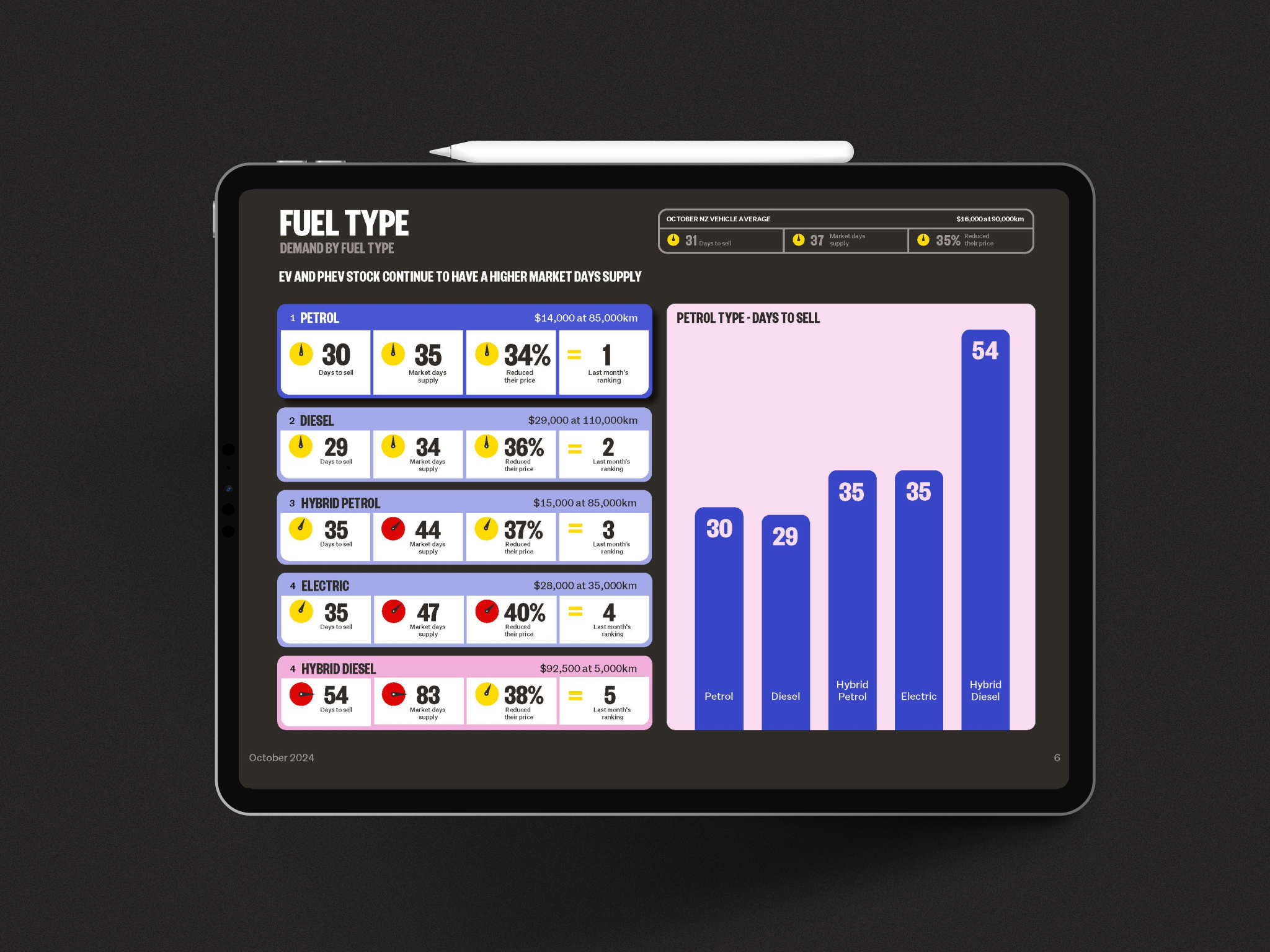 A fast-turnaround project designing a monthly, data-driven insights report for NZ auto dealers—turning complex analytics into clear, actionable visual storytelling.
