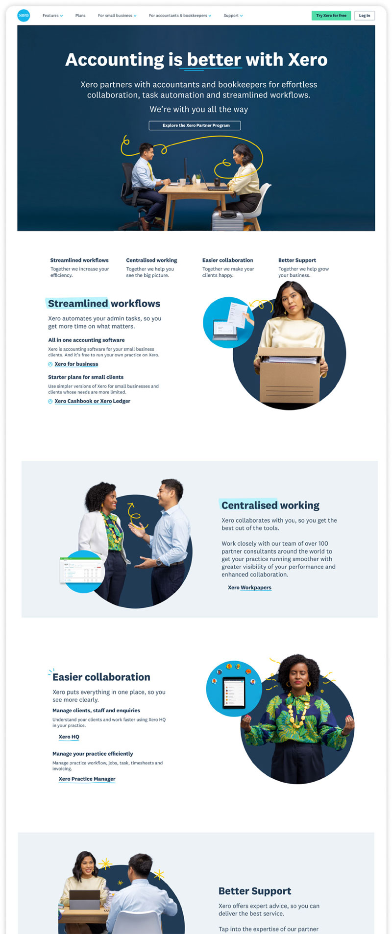 Using the platform of ‘better together,’ I was tasked with creating a tailored branding system that specifically targets partners (accountants and bookkeepers). We needed to make sure the branding system fitted comfortably within the wider Xero branding, yet felt different, fresh and unique to partners.